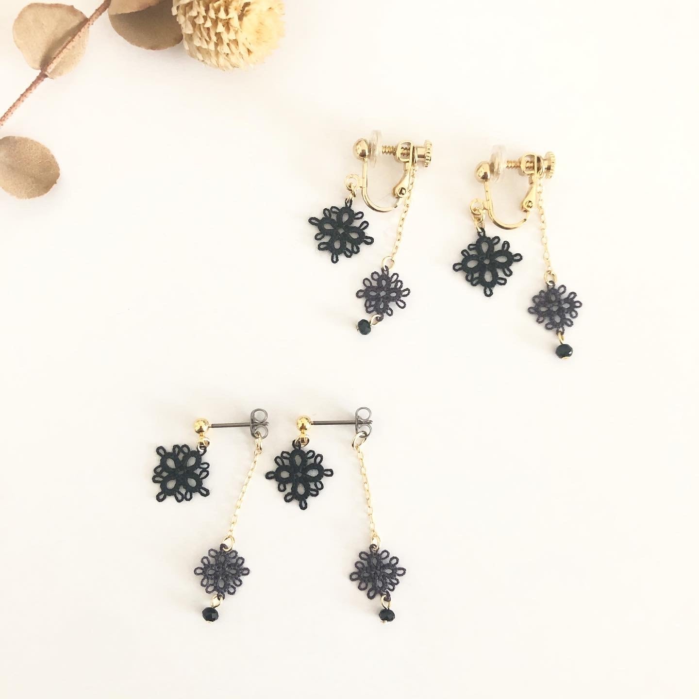 細いチェーンと小さなレースモチーフが