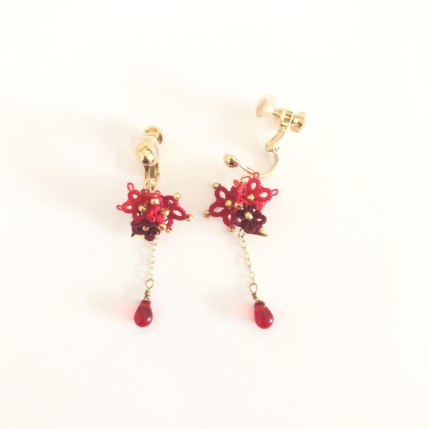 タティングレースのフラワーモチーフを使ったイヤリング・ピアス。