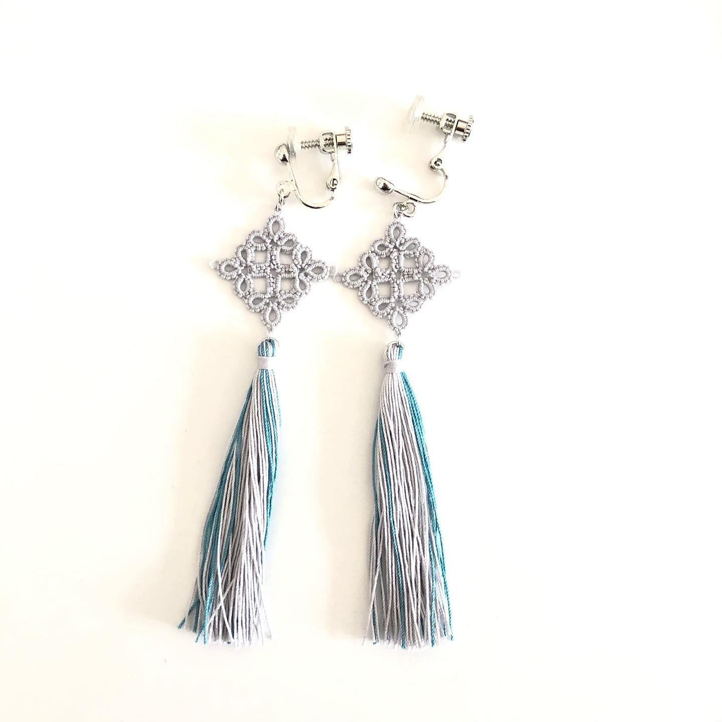 タッセルイヤリング・ピアス シルバーグレー