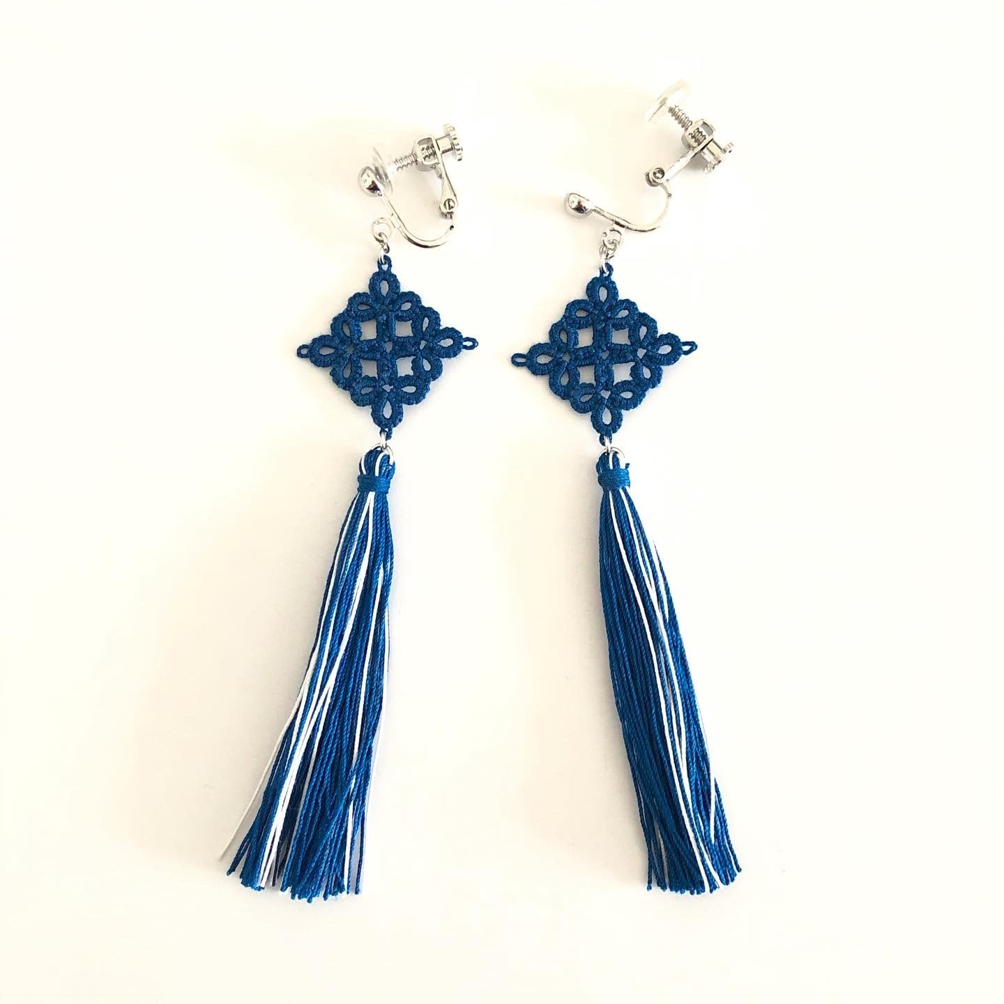 タッセルと同じ糸で結った四角のモチーフと合わせて、